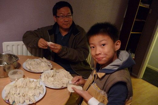 我好懷念台中的二塊錢水餃。我們試著包水餃,因為完全沒有桿麵皮的經驗,因此決定買二鎊一包大約卅五片的水餃皮。零點七五公斤的豬餃肉只要一百廿元,但是二包七十片的水餃皮就要二百元。真是太誇張了。水餃皮比肉貴。這是心痛的英國經驗。