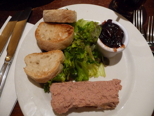 前菜─菜名這麼長,其實一大塊雞肝醬,加上三小片法國麵包,小碟內是甜紅蔥頭
