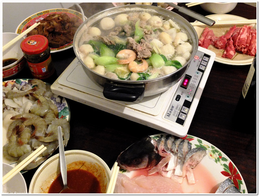 吳叔叔每逢週一休假,週二開始每天工作超過十三個小時,媽媽叫過他們家的外賣,十五鎊至少可以有四道菜,咖哩雞咖哩味很濃,我可以吃二碗飯,媽媽尤其喜歡吃他們家的春捲,高麗菜與蘿蔔絲 調味調得剛剛好,吃不出英國高麗菜怎麼煮不爛的青味,外酥內香。 吳叔叔特地炸了春捲、香酥鴨,阿祥叔叔說過,北京烤鴨到了英國,就變成烤後再炸的香酥鴨,春捲跟香酥鴨都是餐廳才吃得到的菜。挑嘴的我一連吃了四個春捲。 他們家的筷子、盤子上面都有中國字─福與壽,吃火鍋用的電磁爐,彩虹阿姨說這些都是從中國帶來的。 重頭戲是火鍋,吳叔叔準備了我們在英國超市買不到的鱸魚、花枝、丸子、火鍋牛肉片,還有青江菜,在tesco 根本買不到,有時三小株青江菜要一鎊多。媽媽告訴我,這可能是我們在英國吃到最豪華的火鍋,要我用力吃,可能三年後回台灣才能吃到了。媽媽一看看鍋子裡一鍋清清如水的水,還質疑人家,大陸吃火鍋都沒有用高湯嗎? 沒有想到這些海鮮放入鍋子裡煮以後,海鮮高湯還有種牛奶火鍋的香味,吳叔叔特地調的火鍋醬雖然有些辣,但沾了溂牛肉超好吃。我告訴媽媽,比去吃美心吃到飽的自助餐廳還要飽。