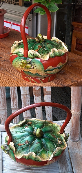 荷花彩繪木製水盆【雍雅行古董家具家飾(Renaissance Artware)】
