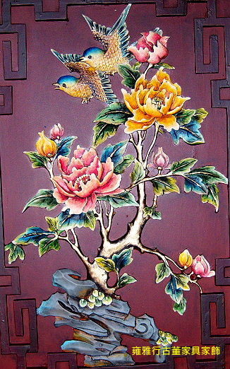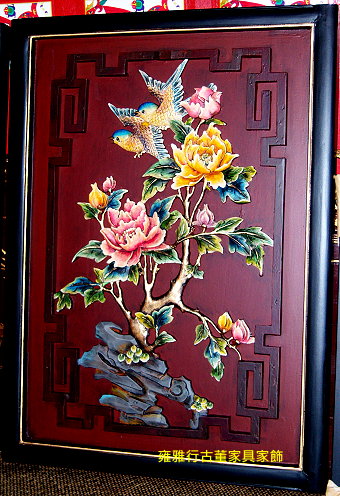 「花開富貴成雙成對」彩繪木雕掛飾【雍雅行古董家具家飾(Renaissance Artware)】