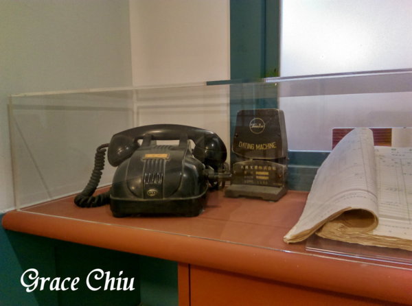 忘了拍這個物件的名稱,但記得沒錯的話這是售票箱,從我有印象開始的車票是小小張且帶有些厚度,車票就這樣一疊疊放在售票箱裡,當旅客購買車票時售票員就會抽出車票滑過鉛字軋日機(電話旁邊那台)打印上日期後販售.