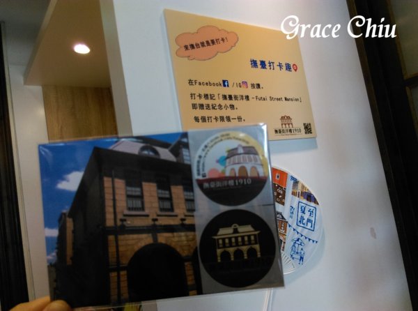 這次參觀有打卡按讚並標記送小禮物的活動,打卡+照片上傳送明信片.