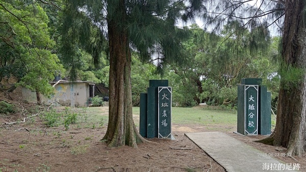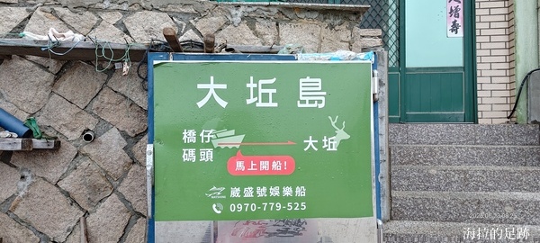 看到岸邊石頭上大大的『大坵』二字及褪色的海角樂園就表示目地的快到囉. 等會兒海拉定要去那兒拍拍照, 那裡看起來就很有天涯海角的感覺.