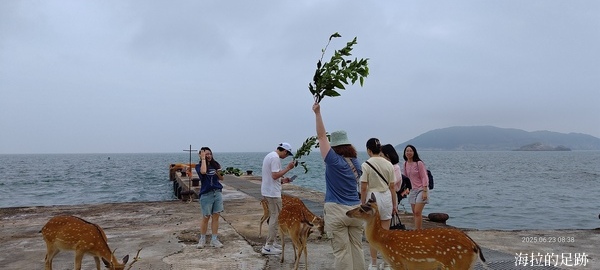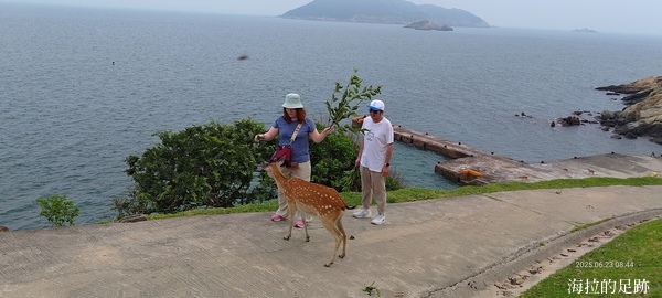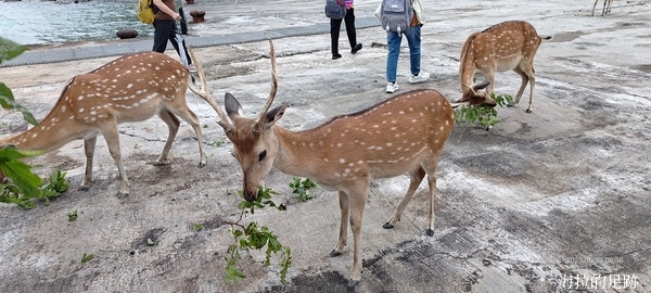 船還沒靠岸就有許多鹿鹿在這裡列隊歡迎我們, 其實應該是在等我們送早餐吧! 來到「台版小奈良」怎能不餵鹿呢? 他們已經被餵養的很習慣, 也不怕生, 彼此之間會搶食, 要把牧草拿高一點, 一枝一枝慢慢餵.