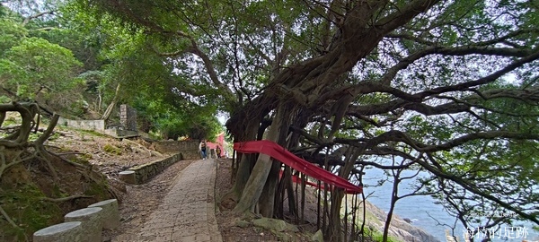 在碼頭跟鹿鹿玩了一陣子後, 我們開始沿著西側環島步道往上走, 預計環島一小圈, 大約1.5小時. (下圖為大王廟)