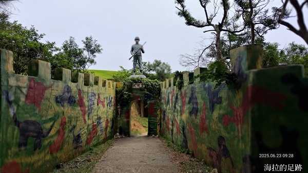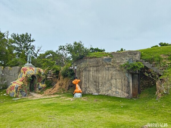 走過一片草原來到大坵堡, 原本是軍隊的駐地, 如今已成為廢墟, 但仍保留著過去的歷史風貌. 堡壘前還擺放了可愛的Q版梅花鹿模型, 增添幾分俏皮氣息.