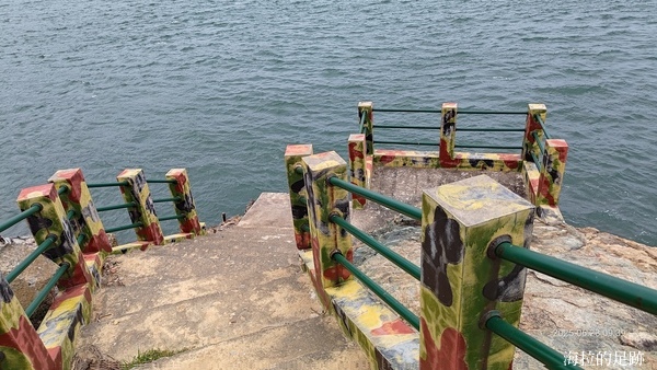 在廢棄的民居裡繞了一陣子後終於找到通往海邊的路徑, 沿著階梯往下走, 總算看到適才在船上看到的大大的大坵石碑, 這裡便是大坵海角樂園.