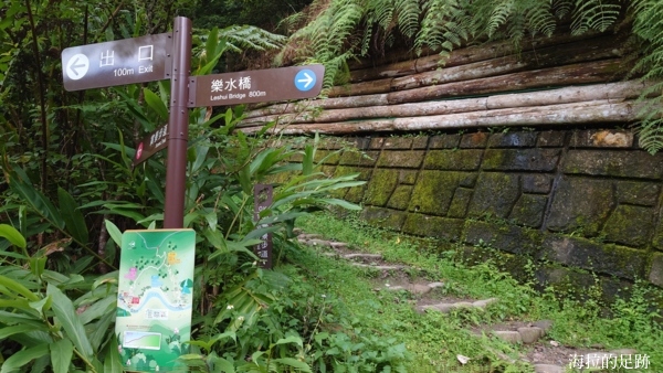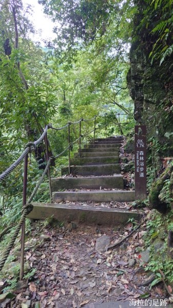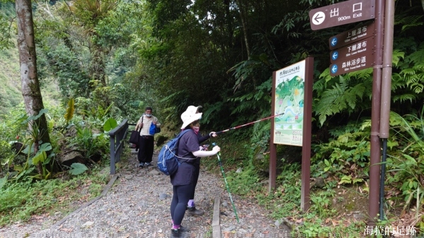 在這裡拍拍照後, 繼續往觀瀑步道上層走去. 平時沒在運動, 體力很差不想爬坡及階梯的人, 可以在樂水橋觀賞瀑布即可. 有體力想要更加親近瀑布的朋友, 可以繼續往上走到上下層瀑布觀景台. 觀瀑步道全長1公里, 終點處可以近距離觀看最上層的內洞瀑布, 非常壯觀, 不時會有水花飛撲到臉上, 在這裡享受清風徐徐及暢快的負離子芬芳吧! 炎炎夏日, 來這裡吸取滿滿的負離子並享受清涼的午後森林浴, 擺脫平日上班的苦悶心情. 吸飽滿滿的負離子, 開始挑戰1700公尺的森林浴步道, 享受有氧運動及芬多精的洗禮. 對於平常有在爬山的我們來說, 森林浴步道並不難走, 緩緩地上坡或階梯, 沒有濕滑的樹根路或碎石路, 走在舖滿落葉的原始林地, 舒適好走.