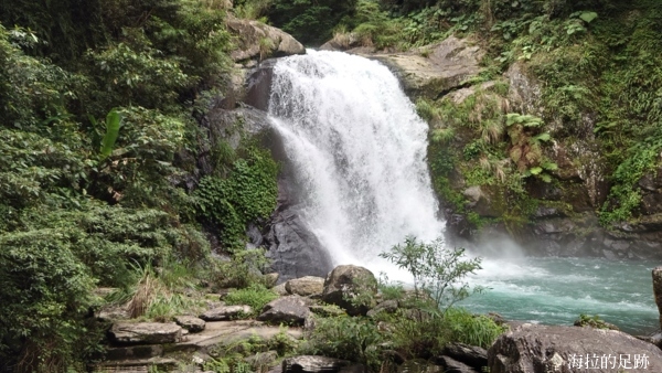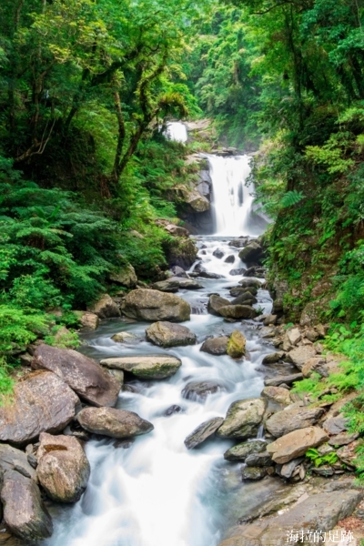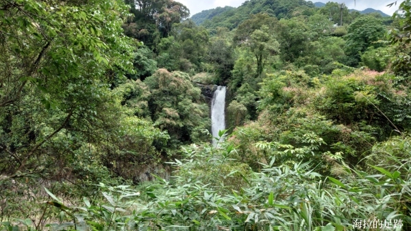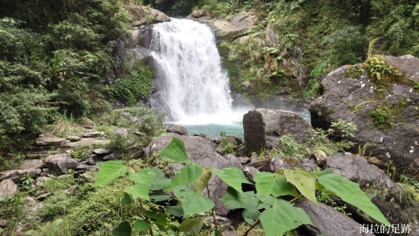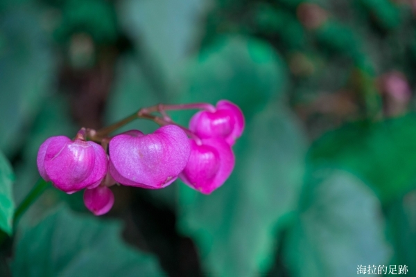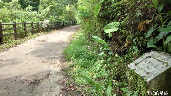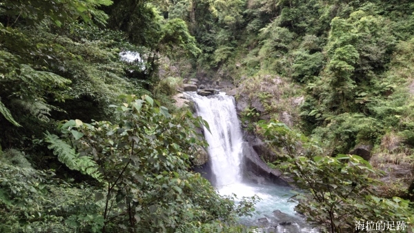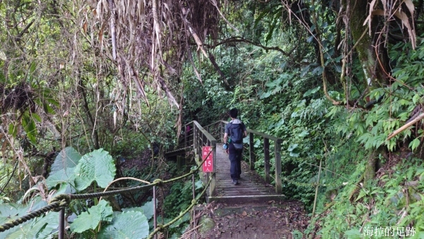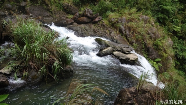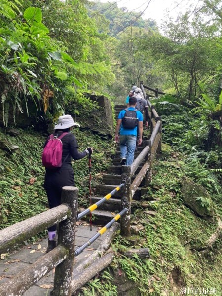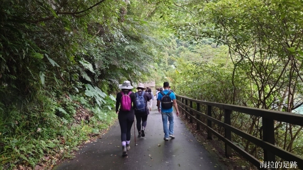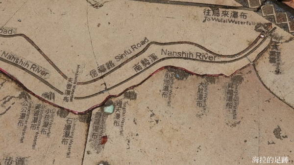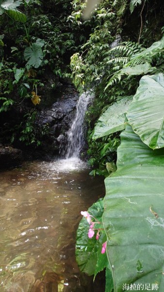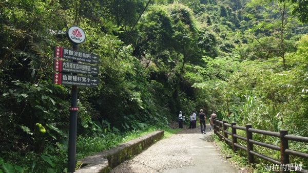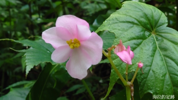步道全長1.5公里, 沿著南勢溪一路蜿蜒, 途經公公瀑布、婆婆瀑布、小孩瀑布、夫妻瀑布、石牆瀑布、潛龍瀑布、通天瀑布、小池瀑布、大肚瀑布、昇龍瀑布等10瀑布, 沿途綠意盎然, 飛瀑美景處處, 終點至信賢吊橋. 我們從吊橋端進入, 走到底接內洞國家森林遊樂區. 小巧可愛的愛心花, 很常見的花, 但海拉不知其名.
