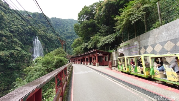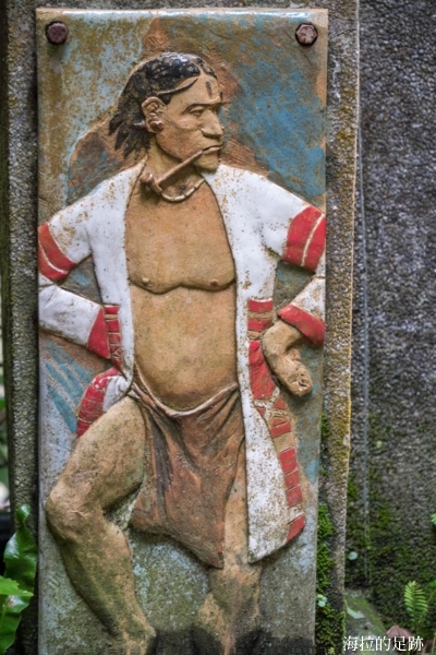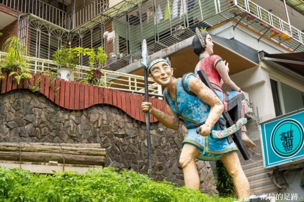 過了覽勝大橋後會看到這個泰雅勇士揹新娘的雕像, 要搭台車到烏來瀑布的朋友要從它旁邊的階梯往上走. 我們走路過去, 所以左轉繼續踢馬路.