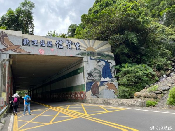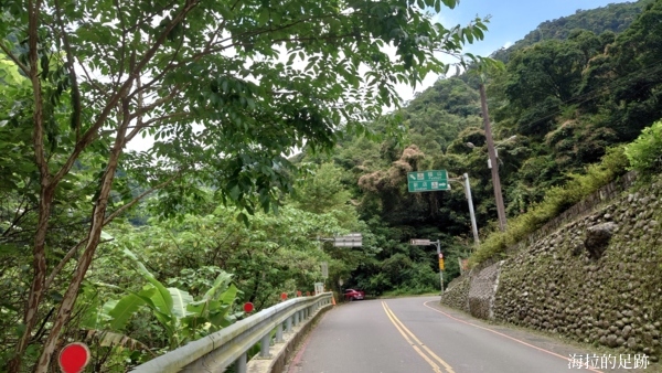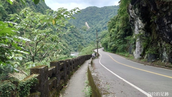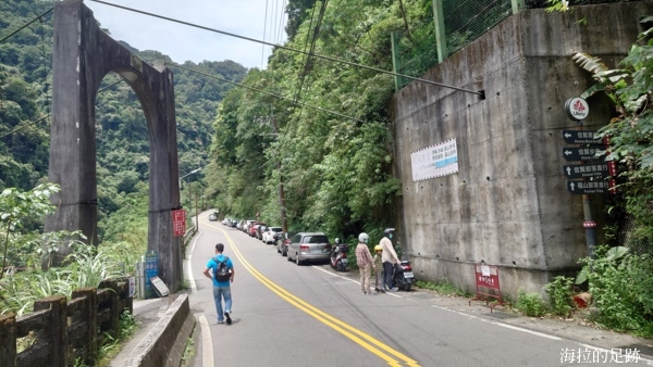 從烏來瀑布到信賢步道入口的吊橋約1.5公里, 我們安步當車的沿著南勢溪慢慢走. 大部份的路段都有人車分道的行人專用步道, 再加上這裡的車流不多, 行走起來非常安全. 過隧道時要靠邊走, 並注意雙向來車, 儘快通過.