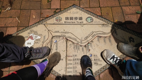 很快地, 我們來到了信賢步道的入口信賢吊橋. 信賢吊橋橫跨於南勢溪上, 全長約30公尺, 橋頭入口有泰雅族勇士持番刀、弓箭雕像. 站在吊橋上觀賞二側的南勢溪風光. 信賢步道位於新北市烏來風景區, 昔日是北107鄉道公路開通前的舊道, 連繫烏來與信賢、福山等地, 公路通車後改建為休閒步道. (資料來源: 健行筆記)