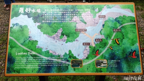 「羅好」源自泰雅族語 Rahaw (拉號), 為泰雅語「捕飛鼠陷阱」之意. 羅好水壩興建於西元1947年, 西元1963年在堰頂加設了弧形閘門, 並建有發電進水口, 連接4,740公尺長的隧道引水至烏來電廠, 利用兩地高度落差來發電, 至今仍供應大臺北地區尖峰時刻及緊急用電所需. 壯觀的壩體及美麗的水池亦是內洞的觀光景點之一, 這水色綠的很不真實.