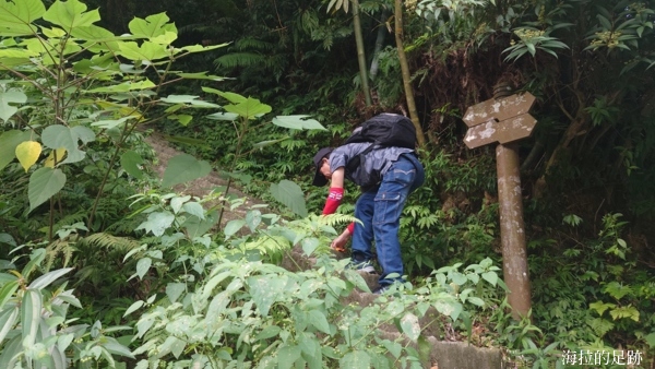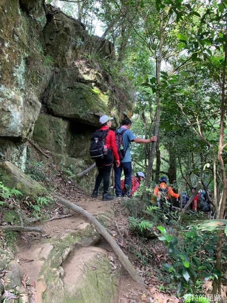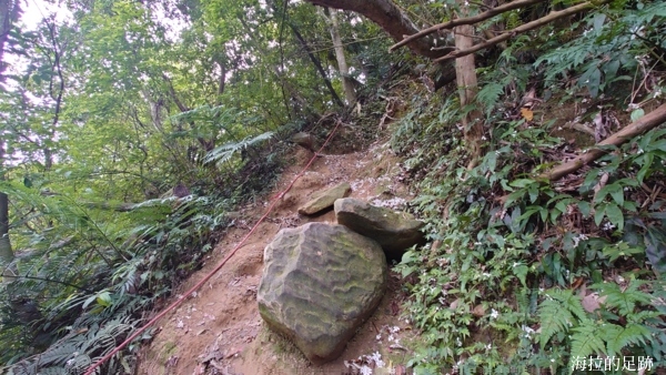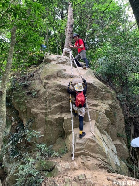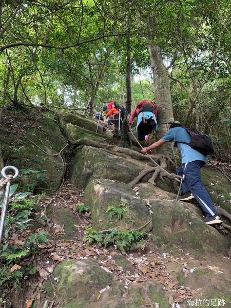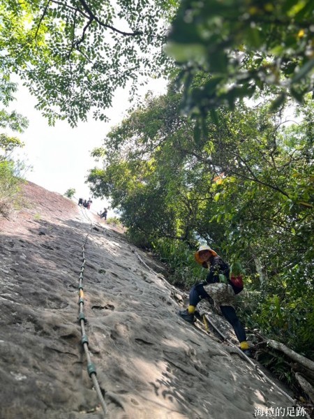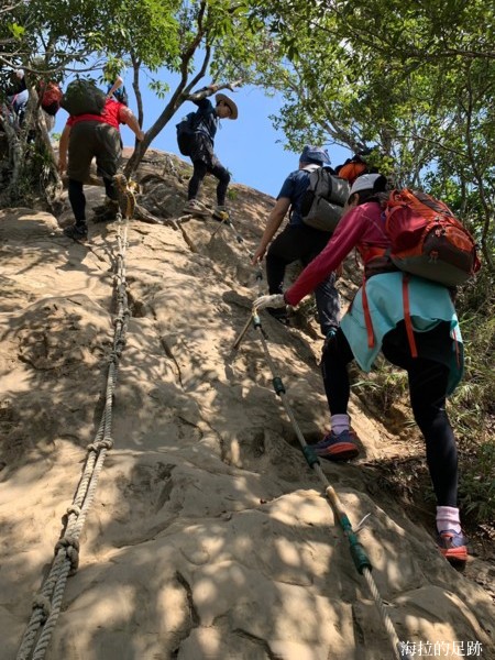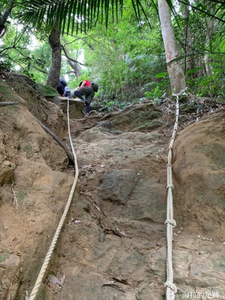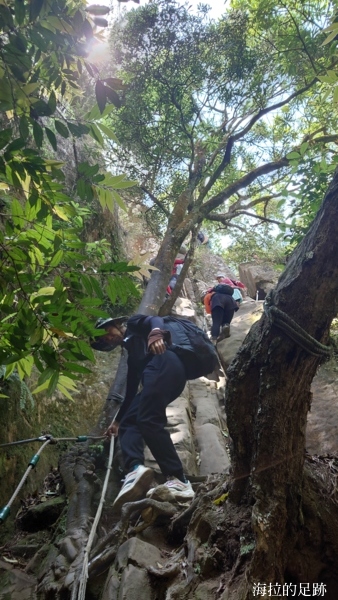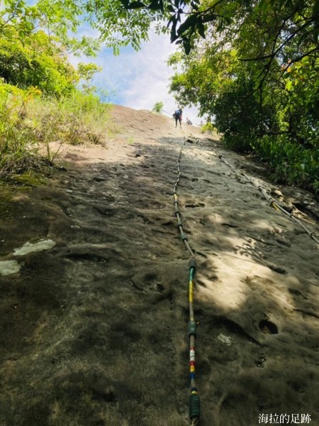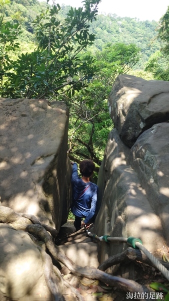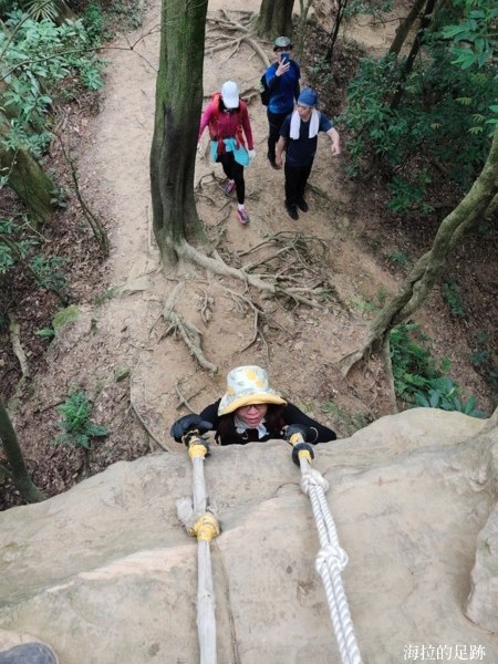休息過後, 大家繼續努力地往前往上爬. 眼前的這一塊大巨口, 看起來沒有很高大, 但爬起來很累. 雖然, 旁邊有腰繞路線, 但海拉就是來挑戰的呀~~怎麼能夠繞路呢? 雙手抓牢了繩子, 雙腳開始找踩點.