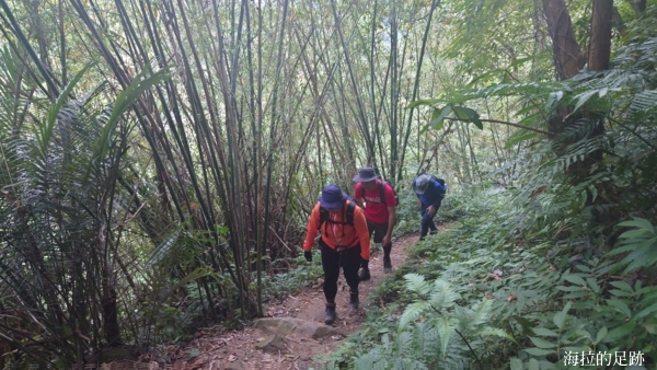 今天參與的山友個個都是勇腳, 大部份的人都爬過中級山及百岳, 對我們來說這樣的地形及路線不算太難, 難的是太悶熱了, 林子裡沒風, 稜線上更曬.