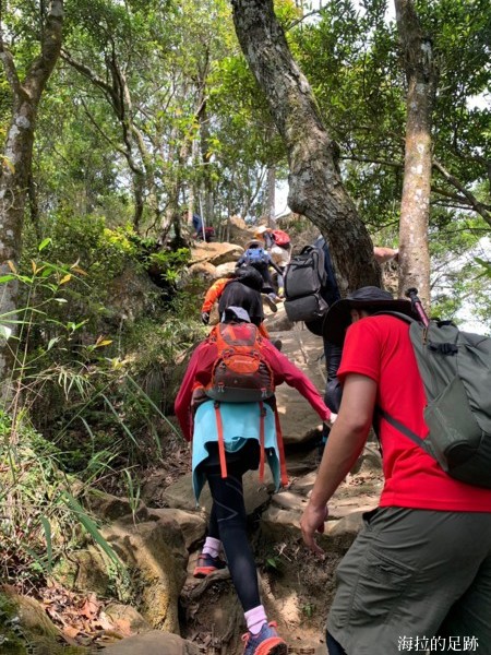 大約十點多, 我們還走不到1/3的路程, 肚皮郤開始打鼓. 畢竟大家都五六點就出門了, 太早吃早餐, 無法撐到12點才吃午餐. 爬山是個三餐不定時的活動, 餓了就吃, 想吃就吃, 邊走邊吃, 開心就好.