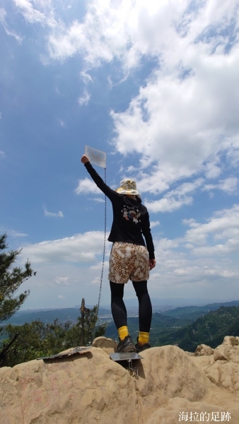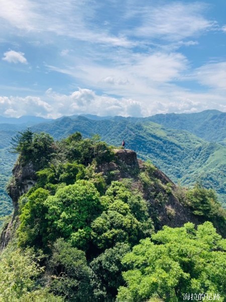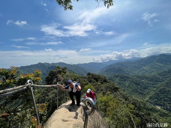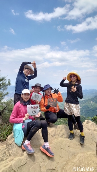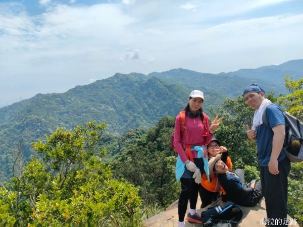 藍天白雲, 山巒疊翠, 拍完獨照換合照, 大家拍的不亦樂乎! 辛苦爬山為什麼? 不就是美麗的風景跟拍照留念嗎? 來到這裡一定要多拍幾張, 海拉覺得這裡的風景比三角點美喔!