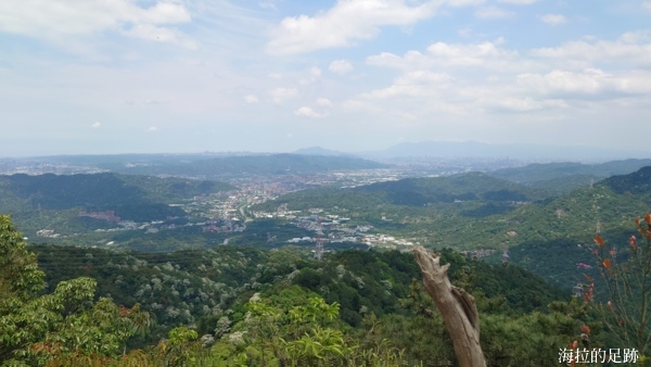 峭壁雄風很考驗一個人的勇氣, 力氣及毅力. 在廣闊的岩壁上有三處可以下降的地方, 想要去獨立峰的山友, 請排隊等候第一處, 我們在稜線上等了很久, 也曬了很久, 後來改變心意不去獨立峰了, 從第二處繩索下降. 需要拉繩下切的岩壁約30公尺, 下降時一直有不認識的熱心山友在山面指導姿勢及方向. 海拉覺得, 只要心中不害怕, 很快就能完成. 海拉下來後發現, 從第三處的繩索下切最快. (從五寮尖三角點俯瞰三峽市區) 下來之後海拉的雙手又開始抖抖抖…這時腦海中浮現了剛才熱心山友的喊話, 果真要快速下降才不累呀! 當大家都抵達鞍部之後, 我們小歇了一會兒, 繼續朝五寮尖攻頂, 這會兒大家沒心情拍照了, 只想著儘快抵達三角點. 7:50 從玉里商店起登, 12:10攻頂, 花了5小時20分, 真是歷盡千辛萬苦, 這五寮尖比海拉想像中的還要累…今天懷著心事來爬山, 難怪爬起來特別累… 山頂的藍天白雲並沒有撫慰海拉的心情. 曾經某位山友說, 心情不好時就去爬山, 爬完一座若還是心情不好, 那就再爬一座. 實驗證明真是鬼扯~~