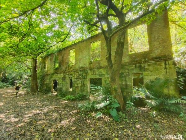 接下來的下山路線就輕鬆多了, 而且沿路都是滿滿的桐花陪伴我們. 一路上大家又開始猛拍網美照, 偶爾遇到清風襲來, 雪白的花瓣飄落, 夾著陣陣花香, 好不浪漫… 按照指標住11號玉觀音, 再到2號告示牌, 踢一段馬路後, 路旁的熱心人士跟我們說走右手邊的山徑到煤礦遺址, 再到玉里商店, 這樣會比踢馬路快. 1:40 來到煤礦遺址, 三峽以前也產煤呀, 難以想像礦工人數曾經多達3千人, 看不到從前的盛況,徒留眼前的斷垣殘壁. 這裡除了是網美的拍照及打卡熱點, 也是初夏看螢火蟲的熱門地點.