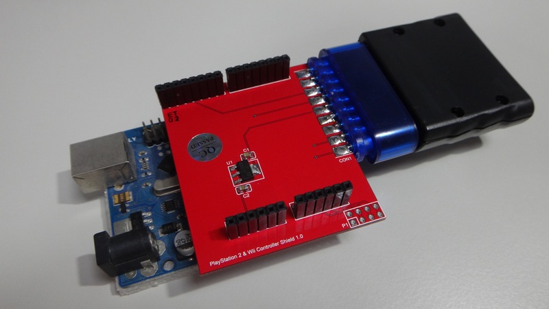下圖,PS2搖桿轉接板 下圖,轉接板裝上ARDUINO UNO與搖桿無線收發器 下圖,另外可加裝Wii搖桿的轉接板,要另外購買與自行焊接 開始寫程式 1. 首先下載ARDUINO PS2搖桿函式庫,之後解壓縮放到libraries的目錄下 2. 在ARDUINO開發IDE環境中,檔案->範例->PS2X_lib->Examples->PS2X_Example,開啟範例 3. 原本是 4. 最後編譯並下載到ARDUINO 5. 開啟序列監控視窗,就會看到按下的按鍵囉,按下X鍵,搖桿還會振動~~