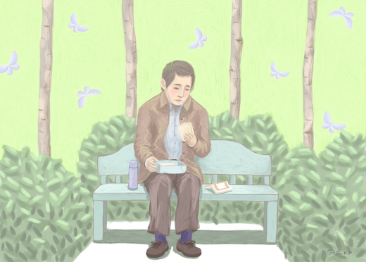 這時走來一名外地人,在不遠處提著專業相機,莫名其妙對著樹對著草對著花猛按快門,然後查看視頻,似乎不滿意又刪掉。“這也好拍?浪費人生。” 旅客經過他身前,似乎對他禮貌一笑。他卻刻意低頭,輕輕掃去散落腿上的麵包屑,還有一根不知什麼時候掉下的白髮,在這麼好的陽光下,還閃着銀光。 |