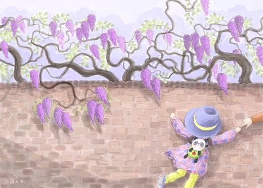 小女孩頻頻回頭,方佛聽到紫藤結成一串串不可大聲吐露的秘密。