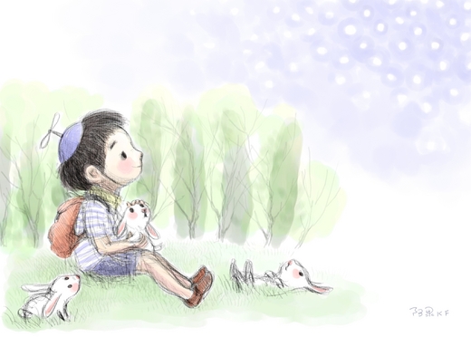 但他真的是看到了,天是一面湛藍寧靜的湖水,星星如小雨點落在湖面,泛起一圈一圈的淺淺的漣漪。消失了又蕩開,消失了又蕩開,錯落有致,彷彿旋轉着一支三節拍的華爾茲舞曲。