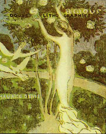 畫:愛情(版畫)/ 法國‧德尼 Denis, Maurice 1870-1943 文:東年 每一個人在孤單的時候都會渴望與另一個人結合,而參與一種比自我更強烈的關係,獲得更大的力量。 愛情的形式最能克服自身的孤立感。 男人及女人皆需要這種自我肯定,以縫合他們的分離感和孤獨,而獲得完美的結合。這是就古老的神話而言;神話說:男人與女人原是結合成一體的,強得敢和天神對抗。 |
