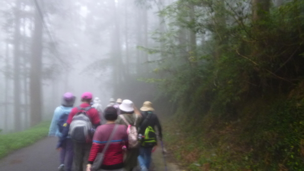 十月二十九日早晨六點四十分,遊覽車準時由高雄文化中心出發,我們的目的地是竹崙步道,那是位於溪頭對面的步道。 導遊郭小姐說她沒去過竹崙步道,司機也沒去過,整車四十三位遊客只有兩位去過,但是他們也不知道怎麼去?只知道由羊彎巷進去。司機打電話問其他去過的司機,也說不清楚,只知道在溪頭對面的山上。 於是,司機在距離溪頭三公里、151公路15.5公里處右轉下溪谷,讓我們在新坪橋前下車;導遊要我們沿路向附近居民問武岫農圃怎麼走,她會在那裡等我們,希望我們下午三點半之前到達武岫農圃會合。 於是一行四十多人快樂的往前走,經過聽濤園民宿,在叉路口問鶴山宮廟公,他要我們靠右走,進入小村莊,走了十來分鐘眼前出現一片竹林,有一條陡直的塑化木步道通往上面,入口處有一座涼亭,還有一個「鶴山步道」地標,但是由於字體不顯眼,大家沒注意,就沿著步道往上走:走了約兩百階,上面是個景觀台,有幾張長木椅,前面沒有路了,都是竹林;於是大家把隨身攜帶的便當拿出來就地食用。 吃完便當,大家帶著空便當盒走下階梯,然後順著「武岫農圃」指標往前走。大約5公尺寬的柏油路開始上坡,再走了一個多小時,又出現一個武岫農圃銀杏森林的指標,上面標明5 公里。柏油路越來越陡,腳步也越來越蹣跚……,隨著海拔高度增加,開始起霧,霧氣越來越濃,團員的距離也越拖越長,被濃霧隔絕,望不到前面團友的背影,回頭也看不見來者,只覺得自己是孤獨的在霧中彳于的行者。柏油路一直上坡,我氣喘吁吁、雙腳痠疼逐漸不聽使喚,終於來到武岫農圃;沒想到武岫農圃不是終點,遊覽車停在還要走四十五分鐘的羊彎;羊彎,是杉林溪公路十二生肖大彎的「羊彎」,再四個大彎就到杉林溪了。 回家之後,我用電腦搜尋,我們的遊覽車再上行11公里由羊彎巷進入,讓我們下車走1.5公里就可到達武岫農場附近的銀杏森林。 我們的行程卻是:溪谷新坪橋→0.3公里→聽濤園→9.8公里→武岫→1.5公里→羊彎,合計11.6公里。 我們從新坪橋走到武岫農圃,沒有遇到對向走來的登山客;我們多走了10.1公里,是冤枉路嗎?不是,我們是來健走的,只是走錯起點,走錯步道,加上年紀老邁,雙腳又不怎麼爭氣,才會走得那麼累。