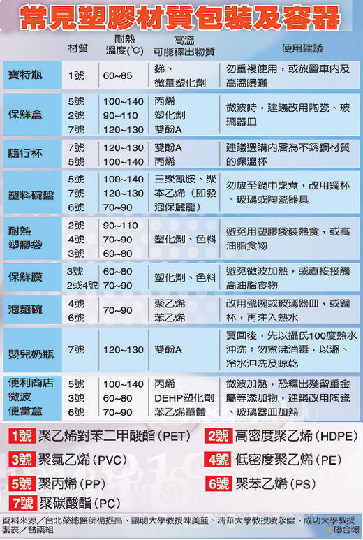 「台灣已經過度『塑化』。」李俊璋認為,某些攤販不想洗盤子,就在盤子外面套一層塑膠袋,「塑膠袋耐熱是保證『不變形』,不代表『不溶出』塑化劑!」他也不建議用塑膠奶瓶幫小孩泡牛奶,萬一洗瓶子刮傷內壁,下次泡就溶出更多。要吃便利商店的微波食品,最好買回家倒在盤子裡,「用那種容器我不敢吃!」