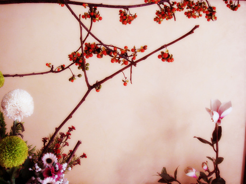坐定一身香氣襲來百花混著的哪種花香說不出來把插了幾天的花努力地從劍山拔起蘭花白玫瑰花紅玫瑰花向日葵小菊花把底部泡水吃水而腐爛的莖幹剪去重新混插成新姿采高高低低隨著我的平靜冷淡的話一句一枝錯落香氣是這樣附著我身上而來吧有一回前座的女子抹來香水隨著她來來去去的移動香味若有若無我努力地搜想起哪種香水的牌子忘了還是記不起某晚端起碧羅春才想起那前座女子的香水味是綠茶淡香問我想你嗎怎如此安靜是想用一種行進間的淡定安然雖然我知道那頭的你是濃烈的念念不捨嘴角的窩盛著一抹不確定