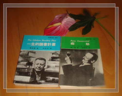 把那書從老爸的舊書架上抽出來擺在五斗櫃上,想帶回再重看一回,算算也一年有了,總是忘了,一層灰在上面,應是沒人動過我的東西,(實情是這一年來沒人進入那屋子吧,我也來去匆匆)。 趁清明假期,這回終於把書帶在身邊來,不就是赫塞嗎?翻看了幾十頁,才猛然想起這本不是《徬徨少年時》,而是他另一本《鄉愁》。看到第四章節, 赫塞寫著酒神: 「酒,在我人生中能比任何其他事物更具重要意義,強烈醇美的酒神成了我的忠實朋友,即使現在也還未曾改變....」,描繪的,讓我興味起來。想起了他說過的"每當知道今兒可以去喝酒,那種快樂..." 該告訴這赫塞與他同一國的心情嗎? 這段文字把酒寫得極其浪漫有趣呢!不如教他抽出赫塞的書自己看看。他說那話兒時的那股眉飛色舞的暢意語氣,讓我不禁印象深刻想笑了起來,真活像個二十初年歲的活力。每個人都有做起來快意的事兒,旅行、照像、喝酒、 唱歌、 縱情的快樂.......我快樂的事就是暢意淋漓盡致地寫出腦子裡的文字虫兒....... 高中三年,我沒補習,把零用錢都拿來看二輪電影與買書了。那時不懂可以向圖書館借書,常流連在嘉義的中正路的紅豆書局/ 志成書局裡翻翻看看...新潮文庫的書一本翻過一本,好像老鼠啃布袋米一樣__不懂挑選,照吃。 上大學後住校更自由了,買了本費迪曼的"一生的讀書計畫"_按書抄表,往圖書館內一本一本的借來看。如今想來,真是傻勁好笑。這種人(我) N年後與這位差點死當我的導師重逢更是戲劇化...... 網路認識的竹科工程師好友,經過N次的相親之後,終於挑得美嬌娘如願以償,婚禮上他特別為網路好友們席開一桌,這一桌網友席有來自全省各地的媒體人名嘴帥哥、國中校長、心理諮商師、國中小教師、網路寫手、網友夫妻檔等等等網路人。真是熱鬧非凡.... 而我也是第一次見到新娘子,一問之下居然是低我幾屆的系上學妹.....她的指導教授居然也是我的導師__差點把我二一的老師也出席婚宴了。在這種場合與大學班導師重逢是有點尷尬......也讓我見識到人與人的緣份真的很奇妙。 最後,請容許我節錄赫塞的《鄉愁》第四章的部份文字做終結: