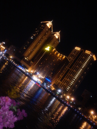 週五為了找買「大寶龍香」,跑了大半個城市,最後還是上網找到建國四路一家老香店才買著,順利在浴佛節當日獻香去。他要換一個新買的故障品,回程,晚上又沿著愛河駛去...夜晚的愛河燈光好美好美…… 愛河燈影.... 我不僅感慨:人的動念好神奇。我下午才想到那二處去走走,接下來一連串的發生事件都讓我去了,雖然只是路過,看著,……還是去了。我的念力好強大阿!好容易心想事成…….....