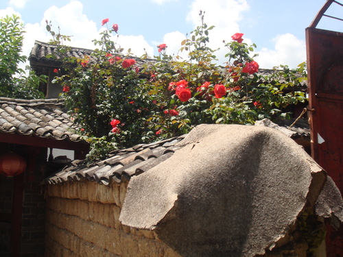 有人說吉普賽的智慧:生存的渴望與浪漫。 看到老驢子悠悠的地拖車路過......天空偶而鴉叫怪鳴幾聲讓人心驚,於是我站在亭下想了:我千里迢迢地跑到這地方"玩"__所謂何來? 沒有一個認識的人,沒有一個遊伴,沒有設定下一個行程.....一個人孤伶伶地像個傻瓜,跑馬曬了二小時累昏了,又找不到司機來載我..... 也忍住向人電話求助的等候時間,於是感到時間一秒一秒的”踱”過我,流速緩緩,我也同樣的慢速行動,靜緩到自己的心臟聲都比風吹樹稍的聲音還響動.... 看著遠處的麗江高山的冰河,看著異鄉的雲朵,心中能想念著誰呢?....... 連空氣都緩慢的跟牛車一樣低喘著"慢慢慢".... 那不叫"歲月靜好" ,那叫完全的孤獨.......一種"自我放逐" ! 我也想了___或許某輩子我也如同這兒婦人一樣,曾安於嫁夫生子育子莊稼終老一生,又那如何?會比較幸福知足嗎?或許我是逃離這種寂靜生活的小女孩....回歸到這種"靜"與"寂"有一點熟悉,卻又讓人產生一種再流浪的力量。 圍籬邊內的薔薇正開,歲歲年年。我來探望過,聞過花香,然後離開.....