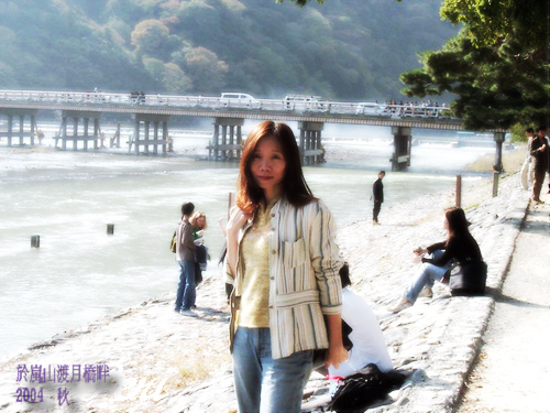 午時,我坐在窗旁.....時空忽然..閃回到那年我坐在嵐山渡月橋畔,我看著河水還有半紅半綠的十一月楓葉嵐山。