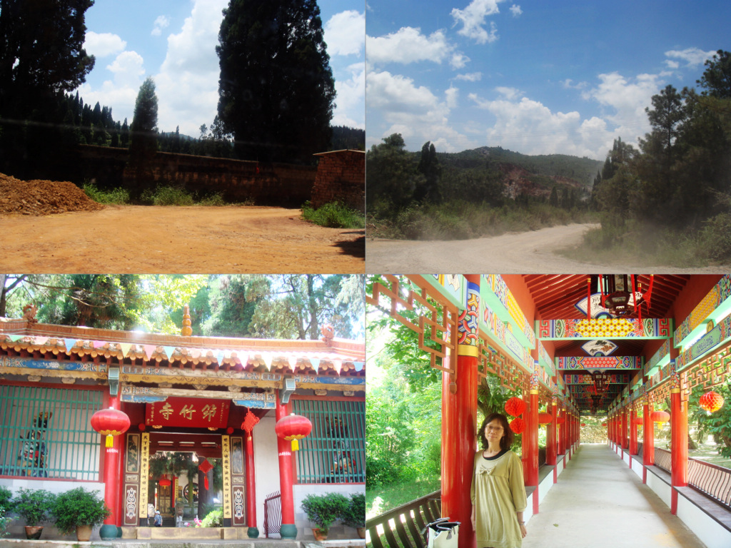 不久,小郭滿臉大汗地請了計程車趕上來,送我快上筇竹寺去。 沿路上的風景真是目不遐給(我根本看不入心,無心膽慌)。又開了快一小時。越開越遠越高,泥巴路上煙塵邈邈,人跡也渺渺。我才開始想著:若是被載到某山地上怎樣了.....世上根本沒人知道。聽他們說五月份成龍等人在筇竹寺附近取景拍片子呢!又聽說這附近拍到中國首次向公眾播放了一段約兩分鐘的UFO錄像。(外星人會降落的地方一定是非常有意思)