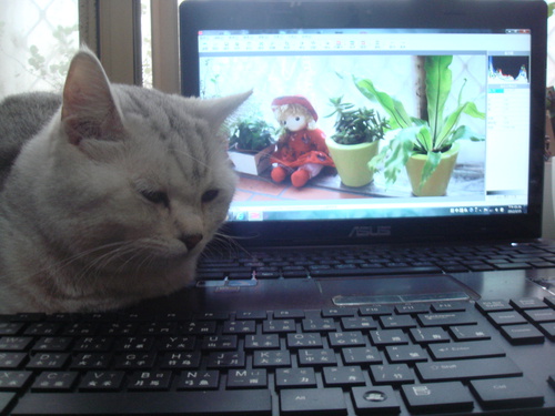 才剛把書放下,牠磨嚫地跳到電腦前來坐下,把牠那完美至極的下巴以三十度的揚起,要我輕撫著牠,牠以耳朵與尾巴的搖擺度來顯示牠的舒適滿意度,牠流覽著我所轉動的網頁內容,我堅信牠是一隻有學問的貓。這一點從剛開始養牠時我就知道了!