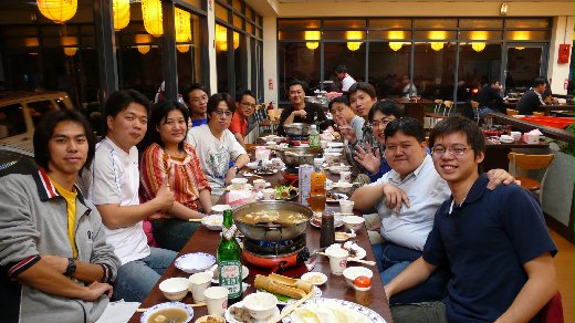 04/10 在龍潭怪屋旁的薑母鴨 ....................................................................... 中午午餐,大家在餐廳ㄠ到熊哥的薑母鴨1000元贊助 下班,大夥不畏冷風大雨來到薑母鴨歡聚 為我送行 一個美好歡樂的夜晚 吃喝之外不忘笑鬧 喜感的汶彬 不斷的起鬨 為了回本 筷不離手拼勁十足的熊哥 晚上值班 還睡眼惺忪趕赴餐廳的小仲 沒有煙伴只能獨享的 雄爺 是同學(一起進公司)的 資棟 負責任但很無奈接我業務的 建富 部門未來要撐場的 濟南 慶瑋 宴忠 幫忙我很多的製程 炳興 珍珍 當然 還有愛玩鋼彈又很好動的組長 清志 以及不克前來的同事們 謝謝大家 這近兩年來的照顧 還有,無私的協助 這個有人情味的 CPT L1B PVD |