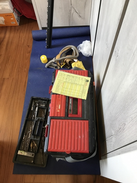 老公問我找了哪間來丈量? 最後發現…… 一年前老公找的, 跟我現在找的, 竟然是同一間「家舒適」! 一年前丈量的帥哥再次來到我家 原來這就是命中註定的意思? (老公還是最帥 ) 這次以快狠準的節奏敲定安裝日期, 早上九點師傅準時抵達, 三人成行非常迅速就定位, 小心的擺放工具 (工具下方還先鋪上軟墊,避免傷到地板,真的好貼心)