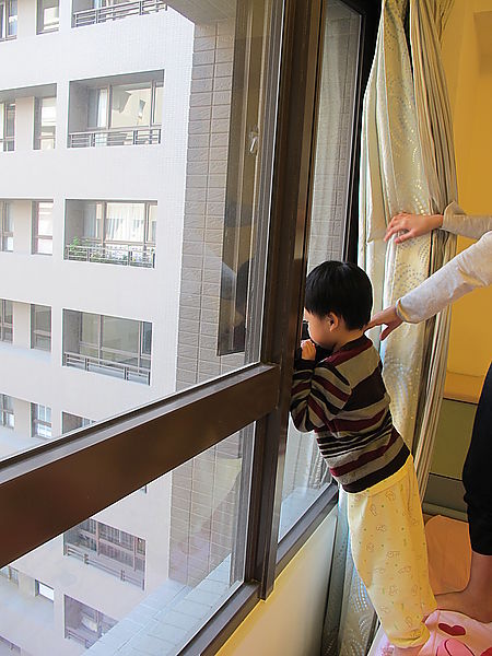 窗戶只能打開約至一個拳頭大的間距,以能達到「通風」的效果,又能達到安全的效果!! 所以更發現老闆是個有良心的老闆,不會因為要多賺錢,而要我們每扇窗戶都加裝!!!
