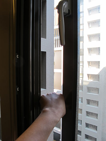 這則是主臥的窗戶,由是窗戶是平移打開的方式,老闆則是送我們「門鏈」~~ 最大的間距也只能打開一個拳頭大小左右~~