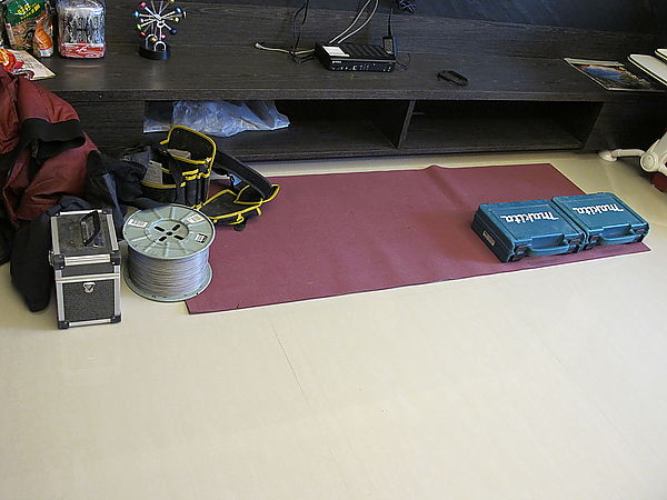 安裝師父會自行準備軟地墊,放施工的工具,以免刮傷地板~~