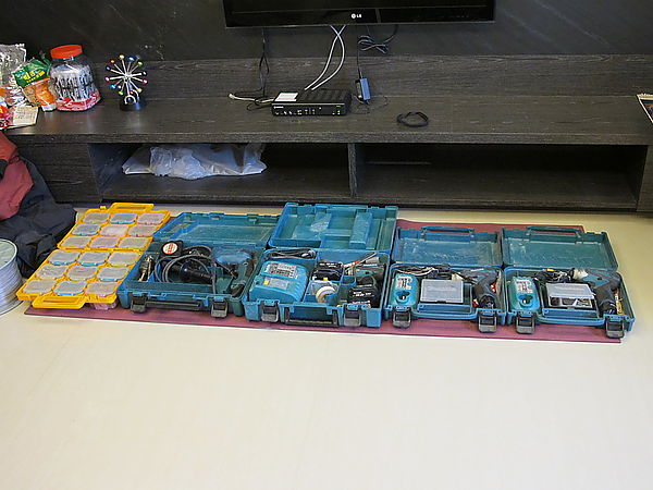 一邊鑽孔,一邊用吸塵器把灰塵給吸走~~ 以避免有粉塵時,會影響固定的螺絲鬆脫~~