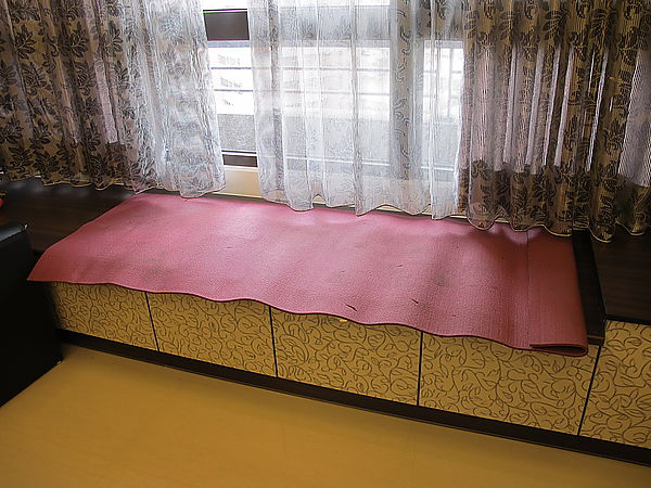 陽台邊也放著軟墊,以避免踏髒了~~真是"足感心仔"~~