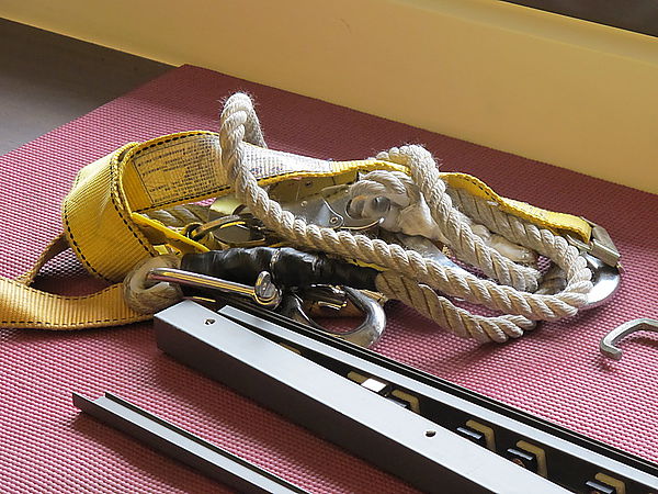 最最關鍵的是【剪斷鋼索的「鉗子」】 老闆說,鉗子和鋼索是互相衝突的兩樣東西,但卻是必備的工具!!! 這也是老闆贈送滴~~ 有些廠商只會叫客戶要記得準備一隻鉗子~~ 做甚麼用的呢?萬一有火災危險發生時,雲梯車要上來滅火時,必須要用鐵鉗子剪斷鋼索唷~~~