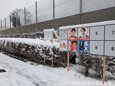 我出門去投票,穿著防水外套、雨鞋,撐著雨傘走出家門。一步一步小心地走著。畢竟神奈川一年也沒下幾次雪,身體不太習慣在雪地行動,一不小心就可能滑倒。