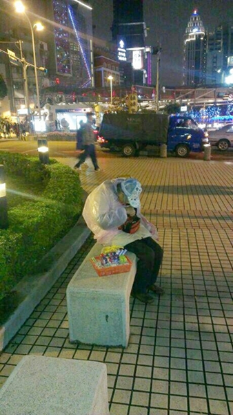 很多人在新北市板橋後站補習搭車時都會看見這位駝背婆婆的身影。