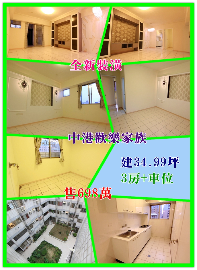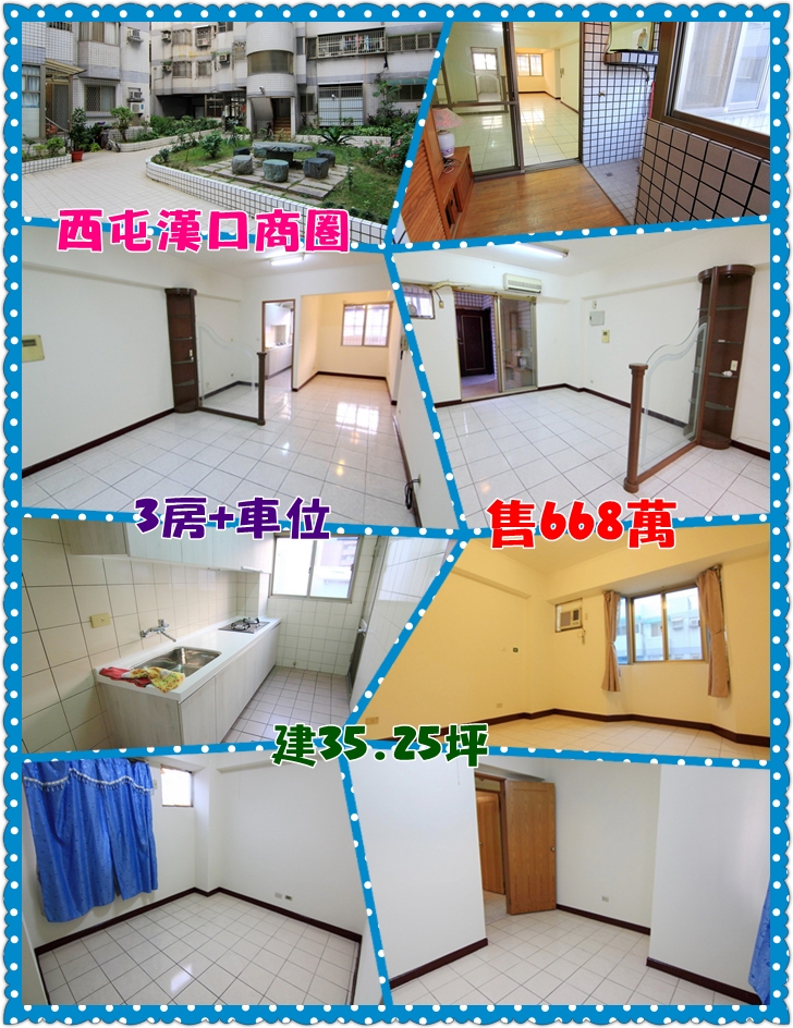 ◆位於青海、漢口商圈,生活機能一級棒,近中義市場、華美黃昏市場~日常生活採買真的很方便喔! ◆近青海家樂福、小北百貨、新市政中心、大遠百、新光三越、逢甲夜市..都近在咫尺~不論您是要頂級購物or量販店…通通都有 ◆新婚首購、換屋,都是最佳選擇‧三房+車位‧低總價,立即成家,免整理馬上入住 ◆入門玄關、前後陽台、居家寧靜、純住宅區、漂亮中庭、24H安全管理、真的很棒喔~水厝~滴家啦!! ------------------------------------------------------ 馬上來電看屋:04-27085233 惠雙房屋-逢甲加盟店[有信房屋企業社] 大台中地區~西屯逢甲水湳經貿園區~買屋賣屋~置產投資~請找我們 投資.收租.保值.增值.節稅.房地產相關諮詢.歡迎來電 04-27085233 物件網 「http://www.西屯逢甲買賣.tw 」 惠雙網 「 http://www.7788.net.tw/hs0183 」 惠雙房屋-逢甲加盟店 您買屋賣屋的最佳選擇 |