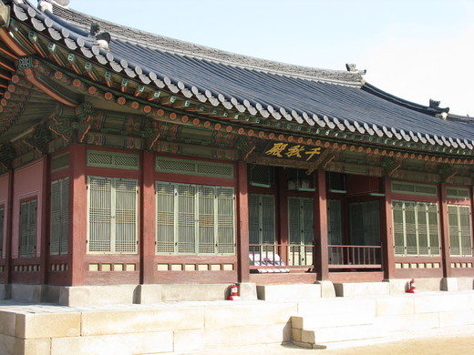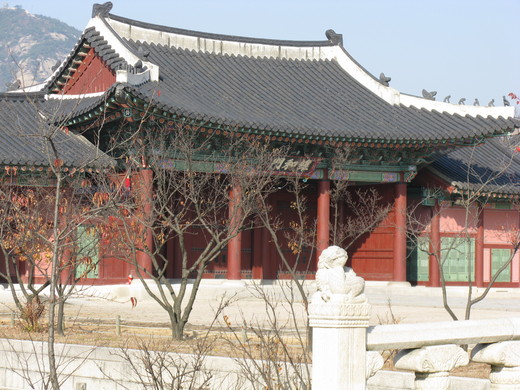 景福宮是韓國的皇宮,延著雪嶽山支脈蓋的,那裡是首爾最好的風水,也因此總統府青瓦臺也都跟這裡在一起。 日本人則是在景福宮殺了明成皇后,然後又燒了景福宮,並搶走其中的寶物,然後再蓋了日本總督府,據說日本人還在雪嶽山上插了六根鋼釘破壞韓國財脈的風水,說到這些,導遊小千可是咬牙切齒,還說日本人打斷他爸爸三根肋骨。但是很奇怪的,日本人還一大票的,到景福宮參觀,外國人中,以日本人最多。 到景福宮的遊客,另一大部分的人,則是韓國的小朋友,年紀都很小,大約都是唸幼稚園,或小一左右。是不是很小就帶來洗腦,開始學會仇恨日本人呢? 景福宮門口有交接表演,表演時間約2個多小時,表演者穿著韓服,打大鼓。 走進景福宮沒多久,就來到招待外國使節的地方,如果繞景福宮,便可以知道招待使節的地點,非常地大,而且位置在皇宮的非常前面。 朝鮮皇帝還有個書房,是用來研究要回覆來自中國的書信的地方。當然這裡說的使節,指的是中國的使節啦。 而皇宮裡,在屋簷上,有唐僧及孫悟空等動物,原來西遊記對韓國影響還真大。 而且仔細看他們的柱子上,不像中國只有龍或獅而已,而是還有馬或猴等動物呢。 皇宮外的石頭地板,凹凸不平的設計,據說是為了使臣子們走路因為害怕跌倒而注意看路,而低頭行走,象徵對皇族的尊敬,另一個功能,則是因為害怕刺客行刺,路面凹凸不平就有助於逮捕刺客。 在皇宮前的空地還會按照官員的地位,排好官職的位置,從正九品開始排到正一品,在前面一點的官員,還會拉棚子下來,遮擋風雨,因此在正殿的地板上,有鋼釘,是幫忙搭遮雨棚用的。 在景福宮的龍,有一個特點,就是七爪龍。這是因為韓國立志要做到世界第一,才做的龍。原來中國的龍是五爪,而朝鮮的龍是四爪。景福宮被燒之後,在重建時,就做了七爪的龍。 千秋殿,則是韓國的世宗大王造出韓文的地方,韓文主要以千秋殿窗櫺上的正方形格子,及門把,而設計出來的。在附近有一些字庫,那是韓國學者因為門派不同,而設計的關於字的版本的書籍存放地,有玄字庫等等的字庫。 大長今故事發生地的御膳廚房,已經是燒掉了。在目前還沒重建起來,只有看見一片空地。事實上景福宮的建築都是重建的。 景福宮在入口及裡面,隨處都可以看到喜鵲,黑白相間,尾巴高翹,非常可愛,而且這裡的喜鵲並不太怕人,我在景福宮才知道,原來前一天看到的鳥是喜鵲,不過牠比較怕人,但是景福宮的不會。 如果注意看,其實首爾有不少喜鵲的鳥巢。 在過年的假日,穿韓服到景福宮,是可以免費入場的喔。